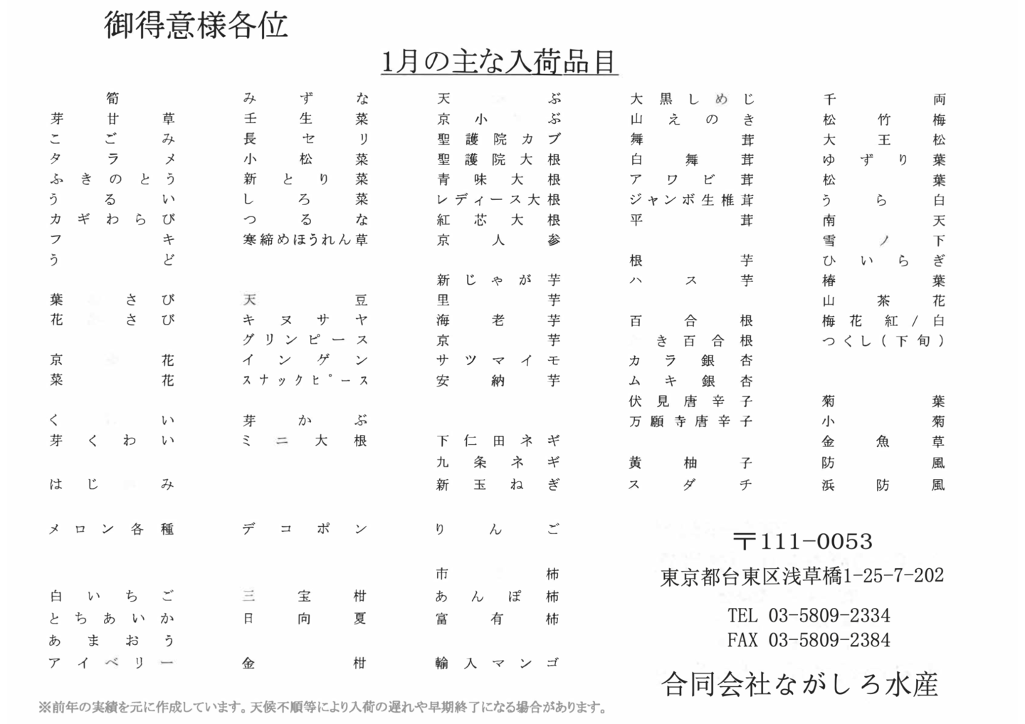 天候不順等による入荷の遅れや、早期終了になる場合が御座います。